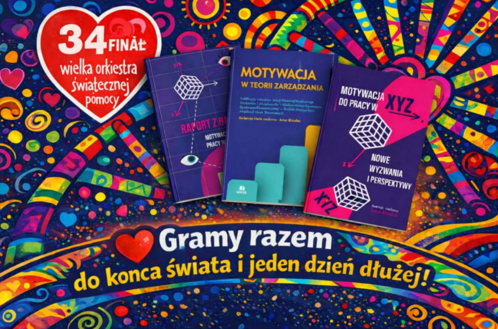 Już w najbliższą niedzielę podczas 34. Finału Wielkiej Orkiestry Świątecznej Pomocy w Środzie Wielkopolskiej będzie można wziąć udział w licytacji wyjątkowych publikacji naukowych 📚Do wylicytowania będą 2 zestawy naszych książek:🔹 „Motywacja w teorii zarządzania”🔹 „Motywacja do pracy w erze XYZ. Nowe wyzwania i perspektywy” oraz raport z badań.To doskonała okazja, by połączyć wsparcie szczytnego celu z poszerzaniem wiedzy z zakresu zarządzania i motywacji 💡Dochód z licytacji zasili zbiórkę WOŚP, wspierając tegoroczny cel fundacji.